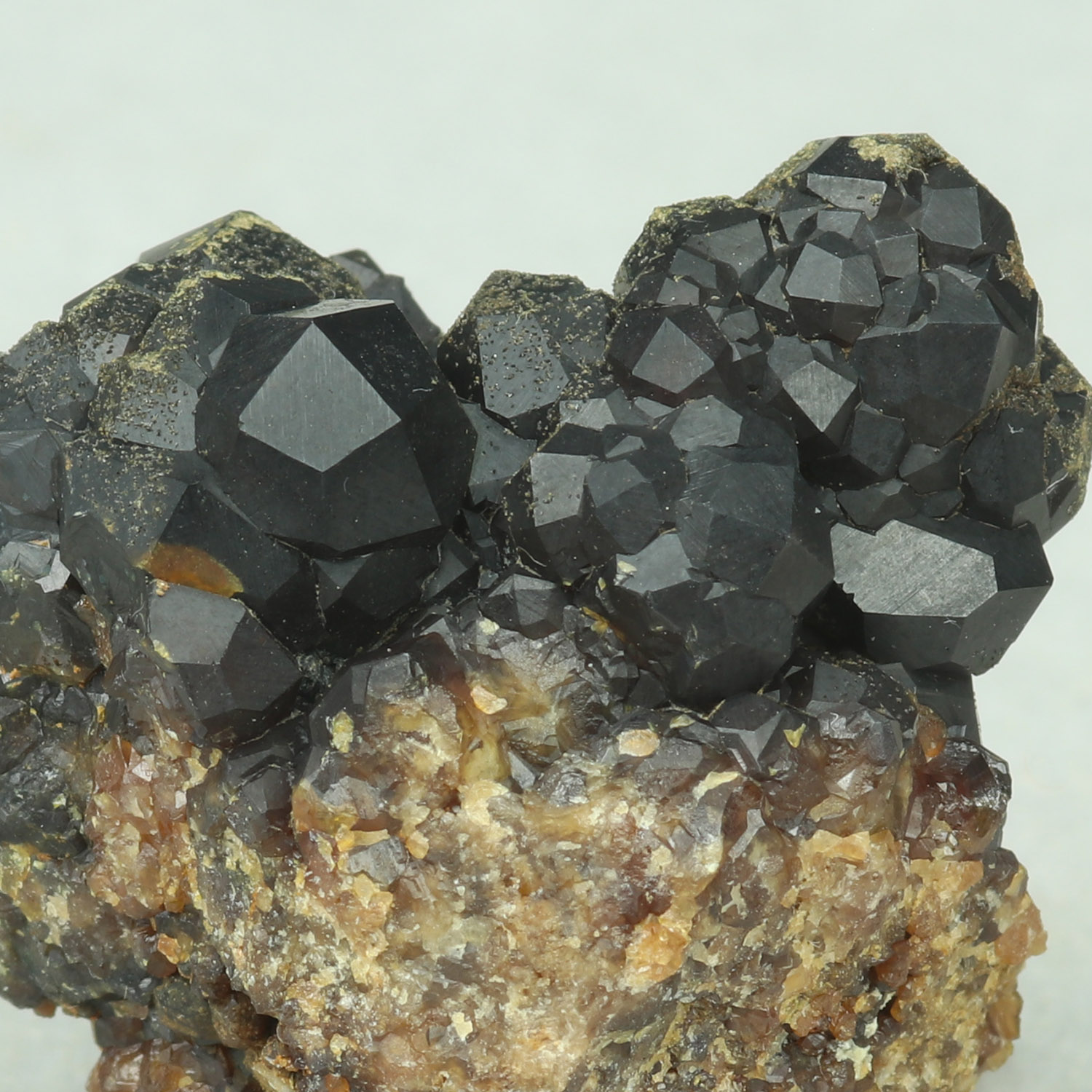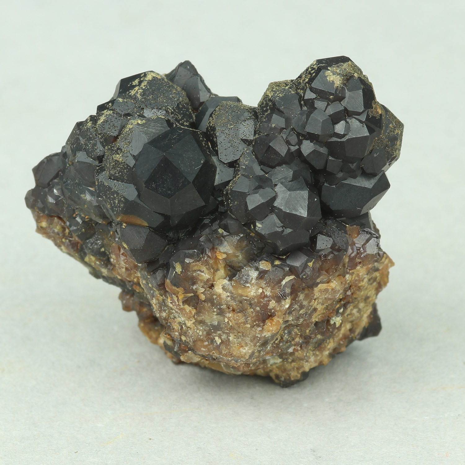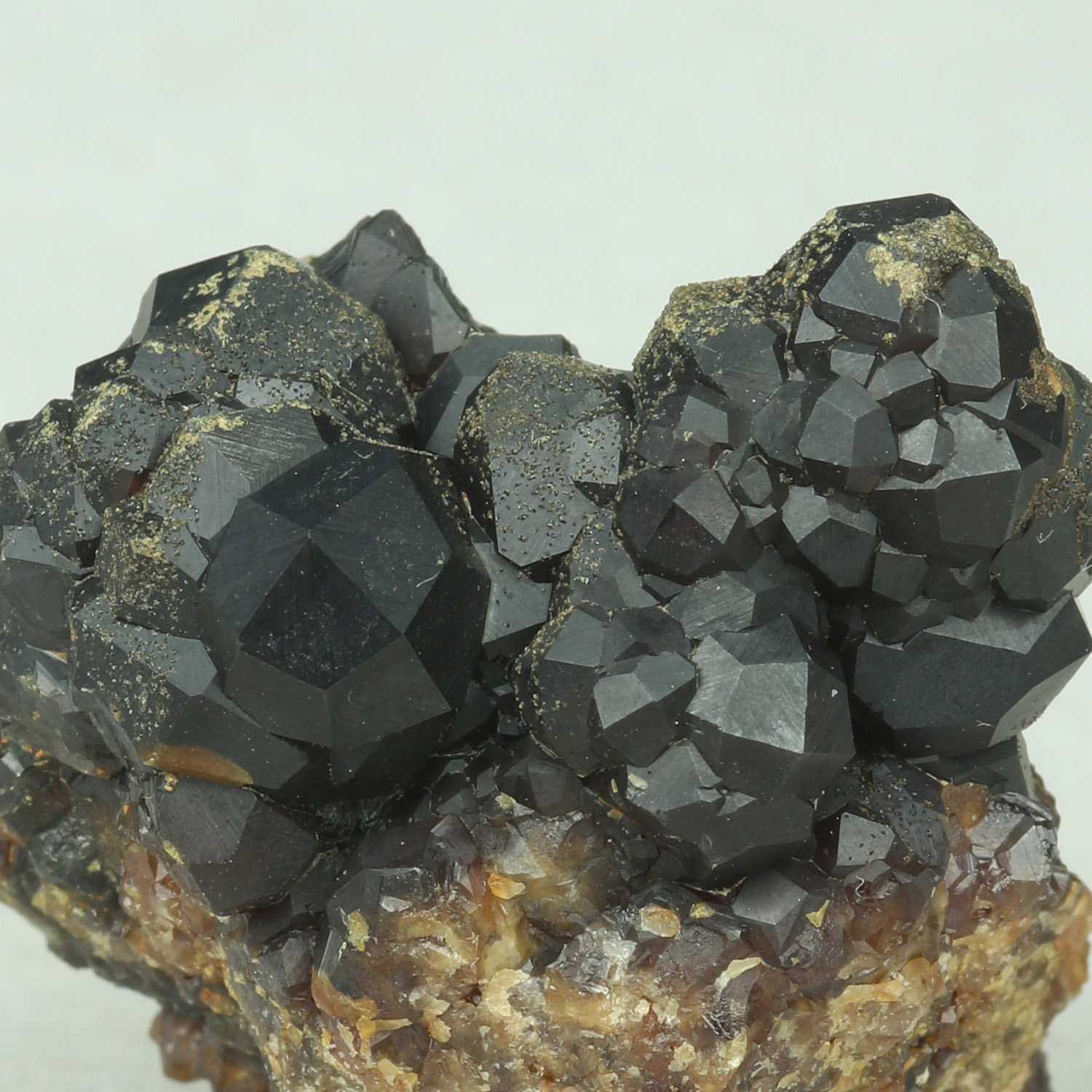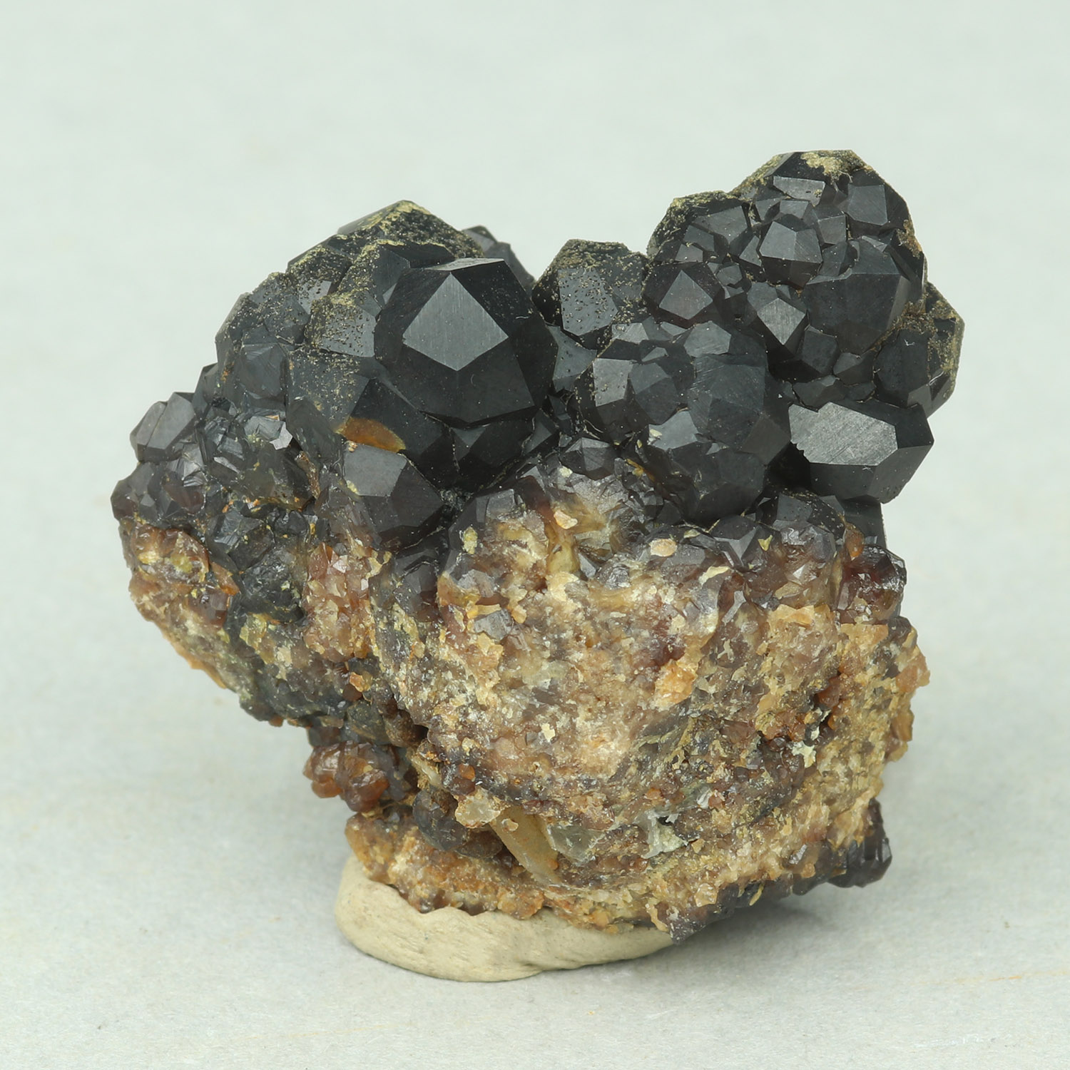 Cool mini with dark brown crystals  of andradite on matrix.