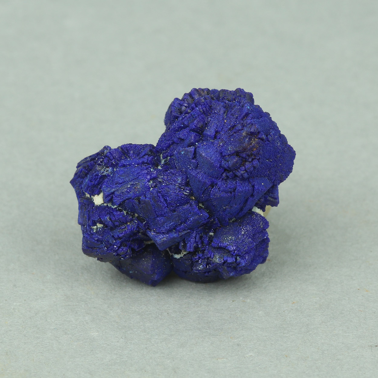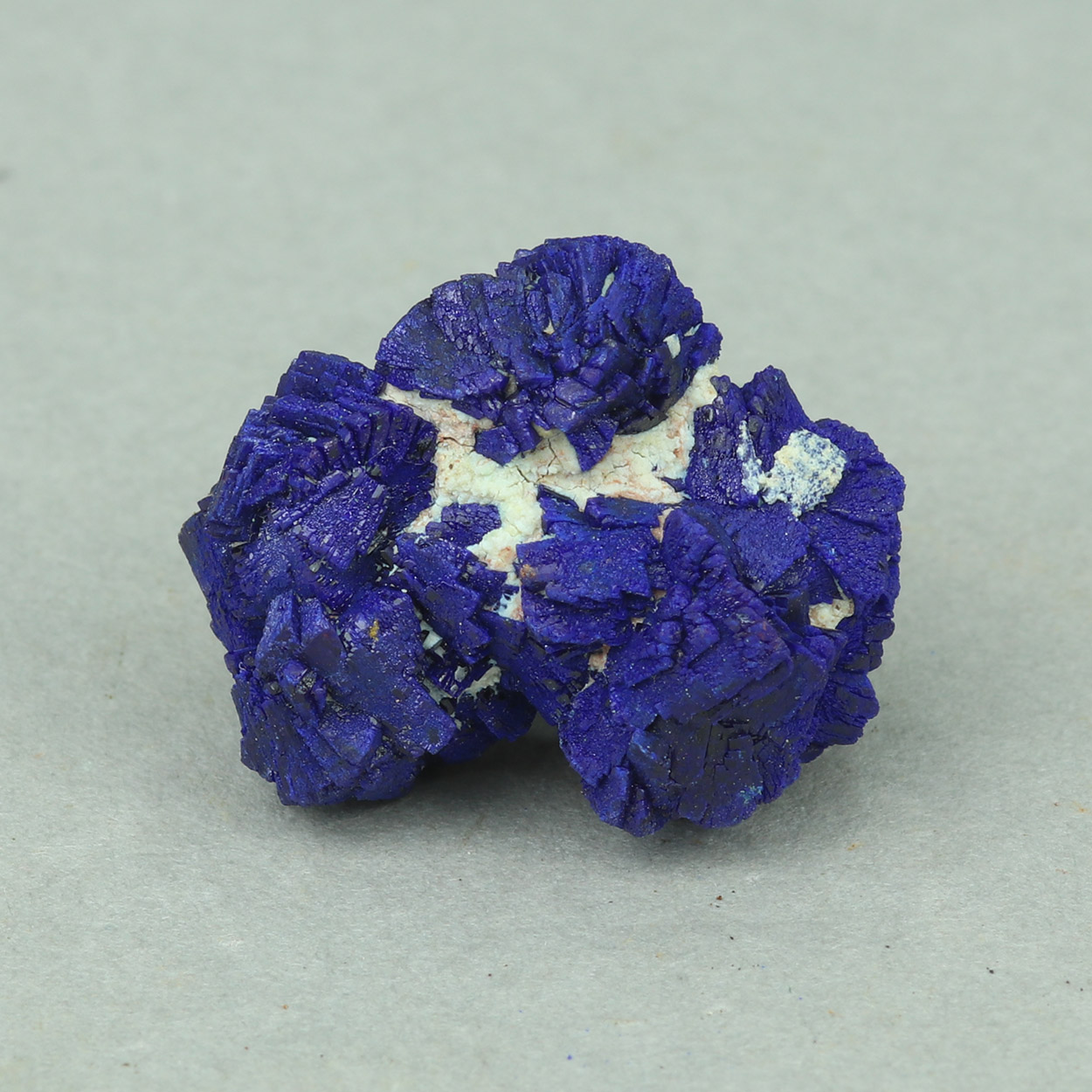 Aggregates of blocky blue crystals of azurite form this beautiful thumbnail from Lavrion. Discovered in 2012.