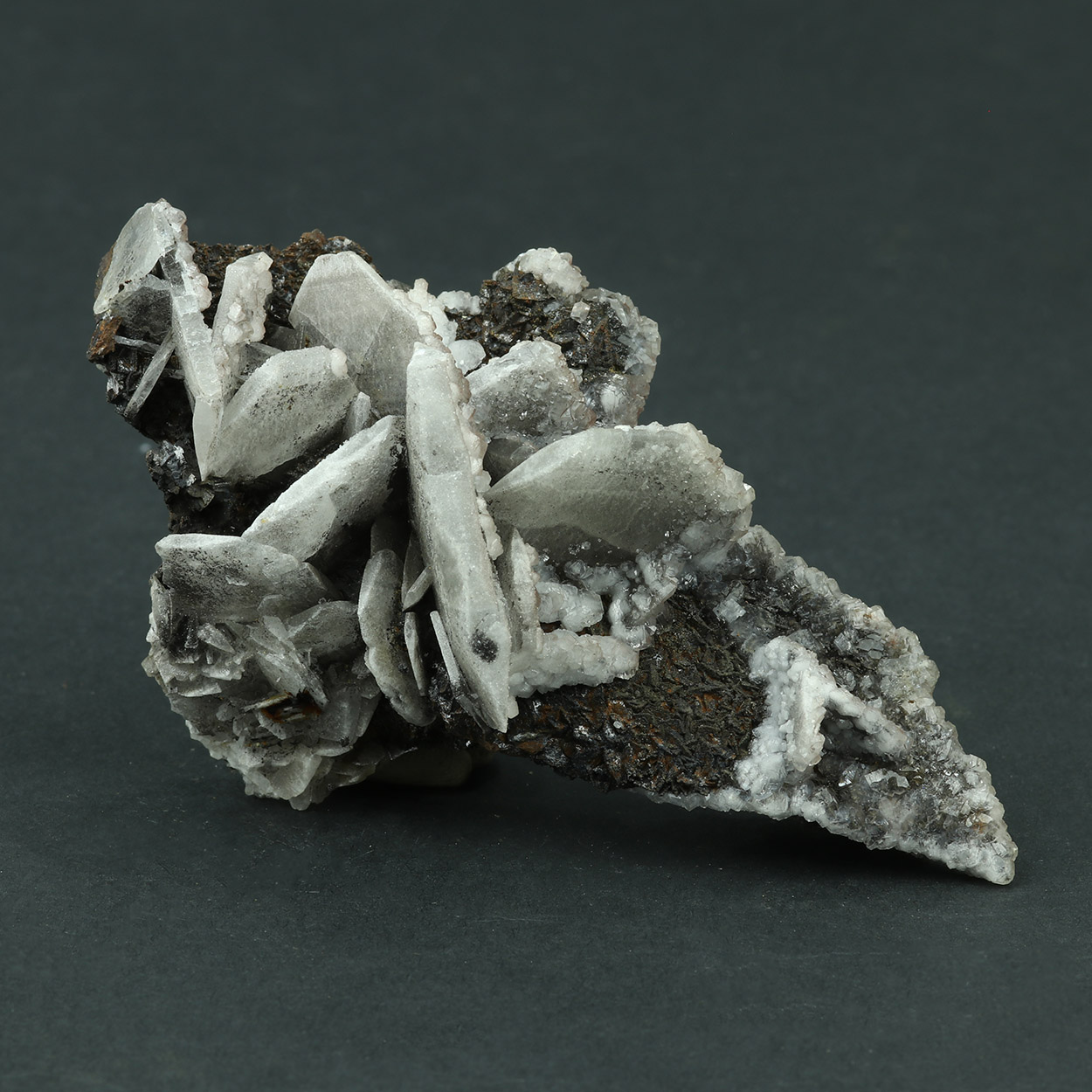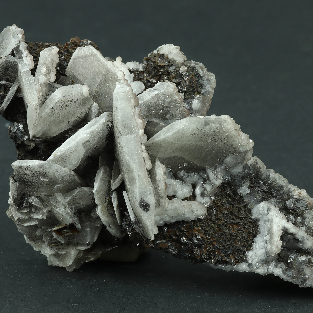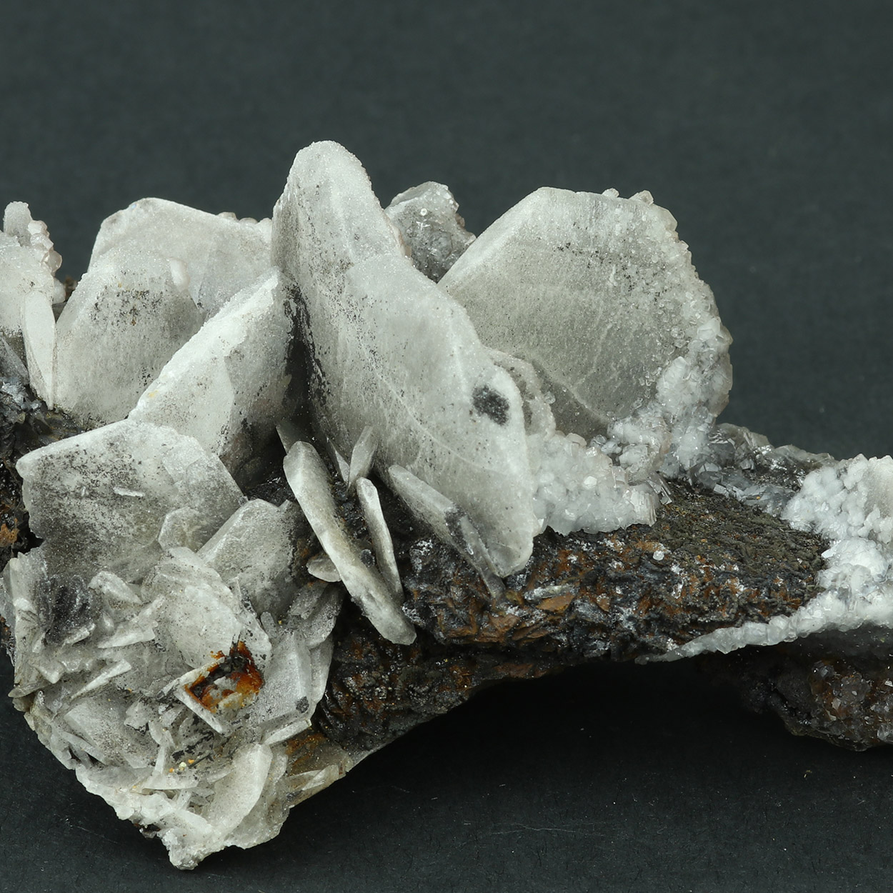 This is a good Serifos baryte with whitish crystals on contrasting gossan matrix.