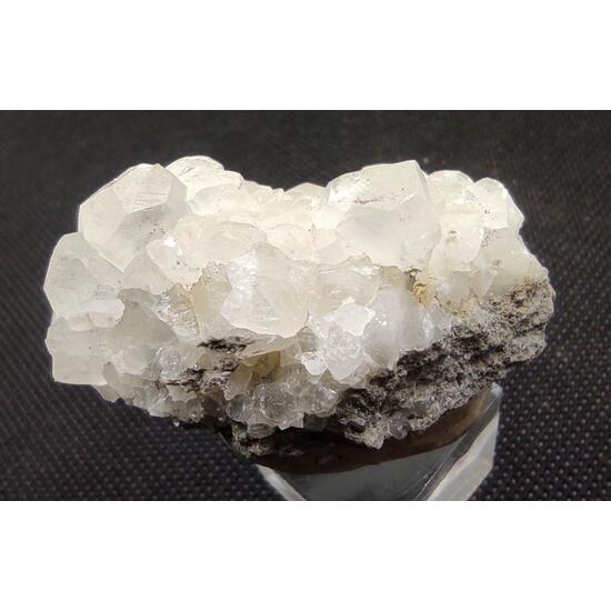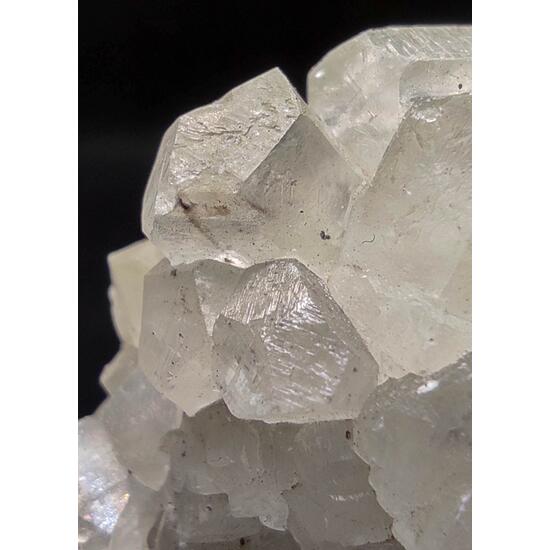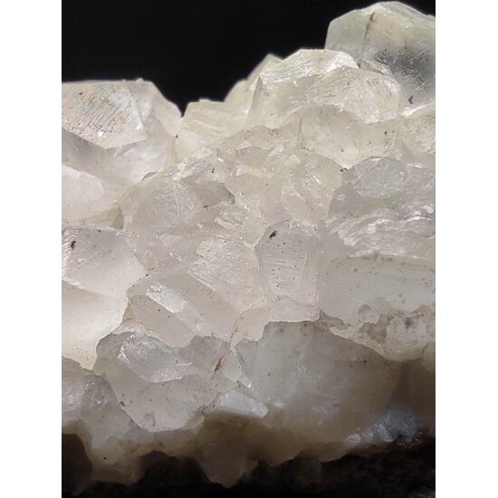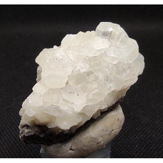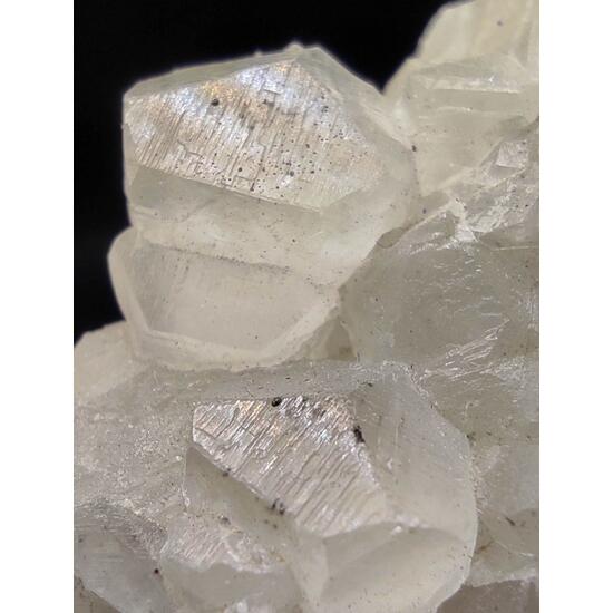 Calcite crystals from a geode fragment, which are rhombohedron-shaped and have hydrocarbon inclusions, obtained in the “Nuria” mine.