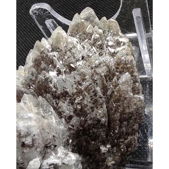 This mineral sample comes from the state of Veracruz, more specifically from “Piedra Parada”, it is an aggregate of calcite crystals of dark tones, in clusters, with stepped crystallization. A nice piece from Mexico.