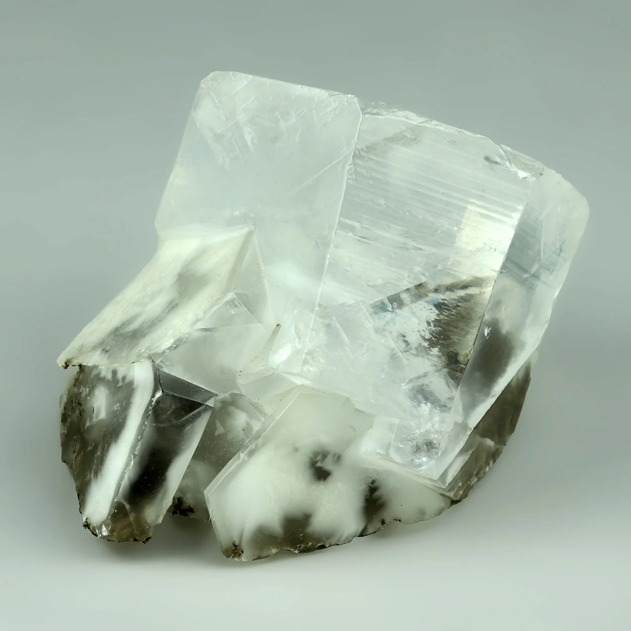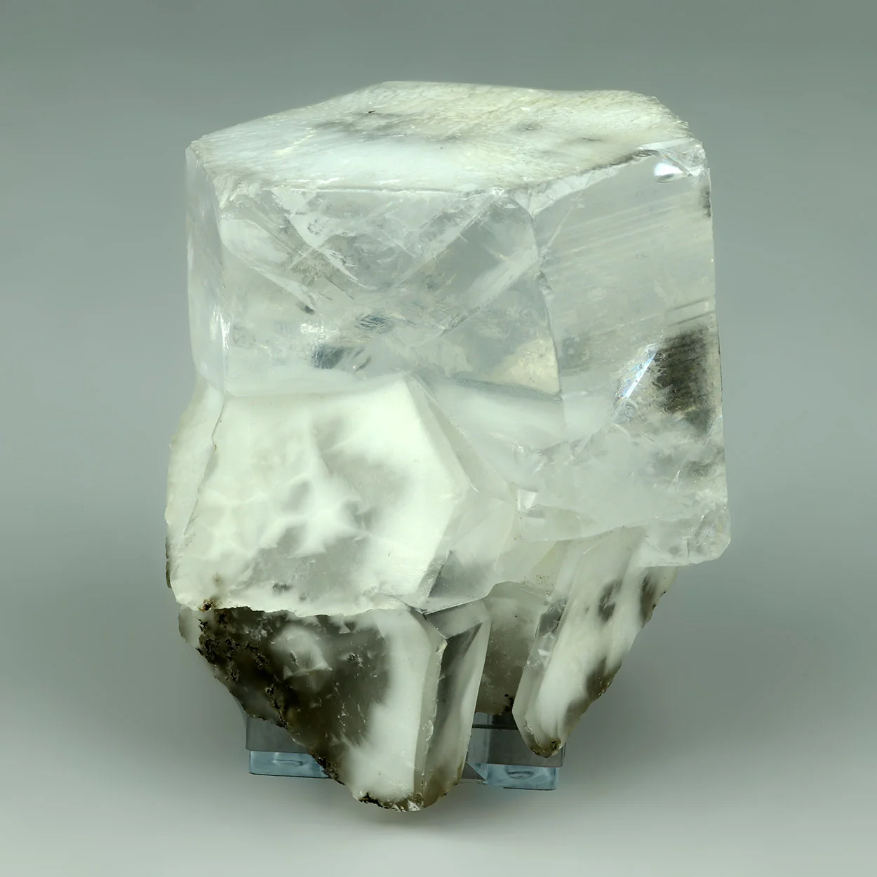 Large, hexagonal, clear crystals of calcite with inclusions in the crystals near the base. The main crystals is thick and huge and the termination has a white layer that can be seen from the top. Overall, a great calcite. There is peripheral wear, as usual. An impressive, high-quality calcite specimen from China. From my personal collection of Chinese minerals.