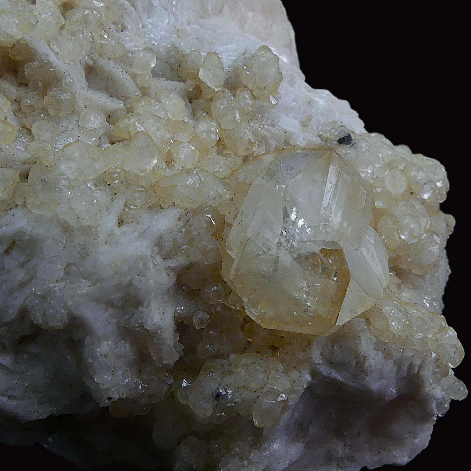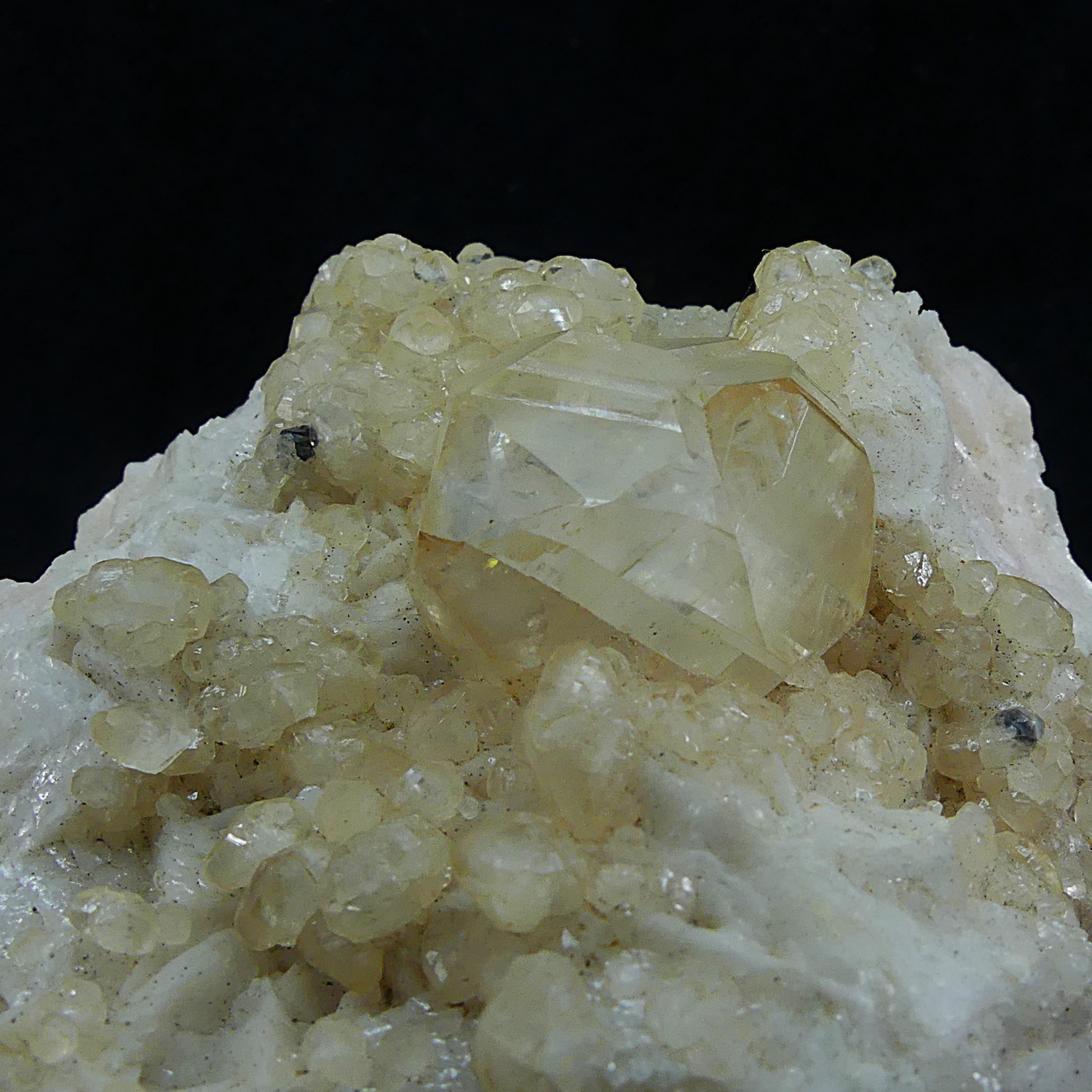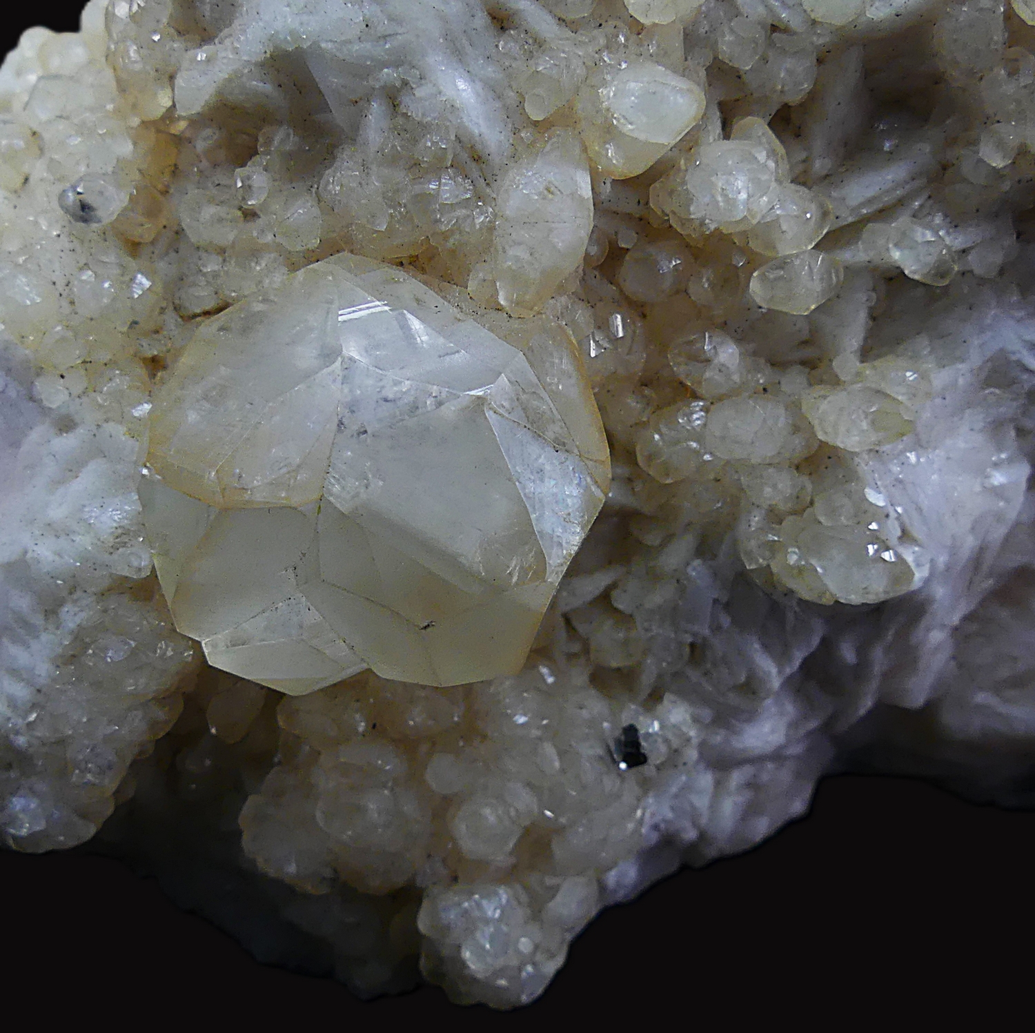 Spectacular group of calcite crystals, one of them standing out for its size, on a dolomite matrix from this famous mine of the La Florida mining group.