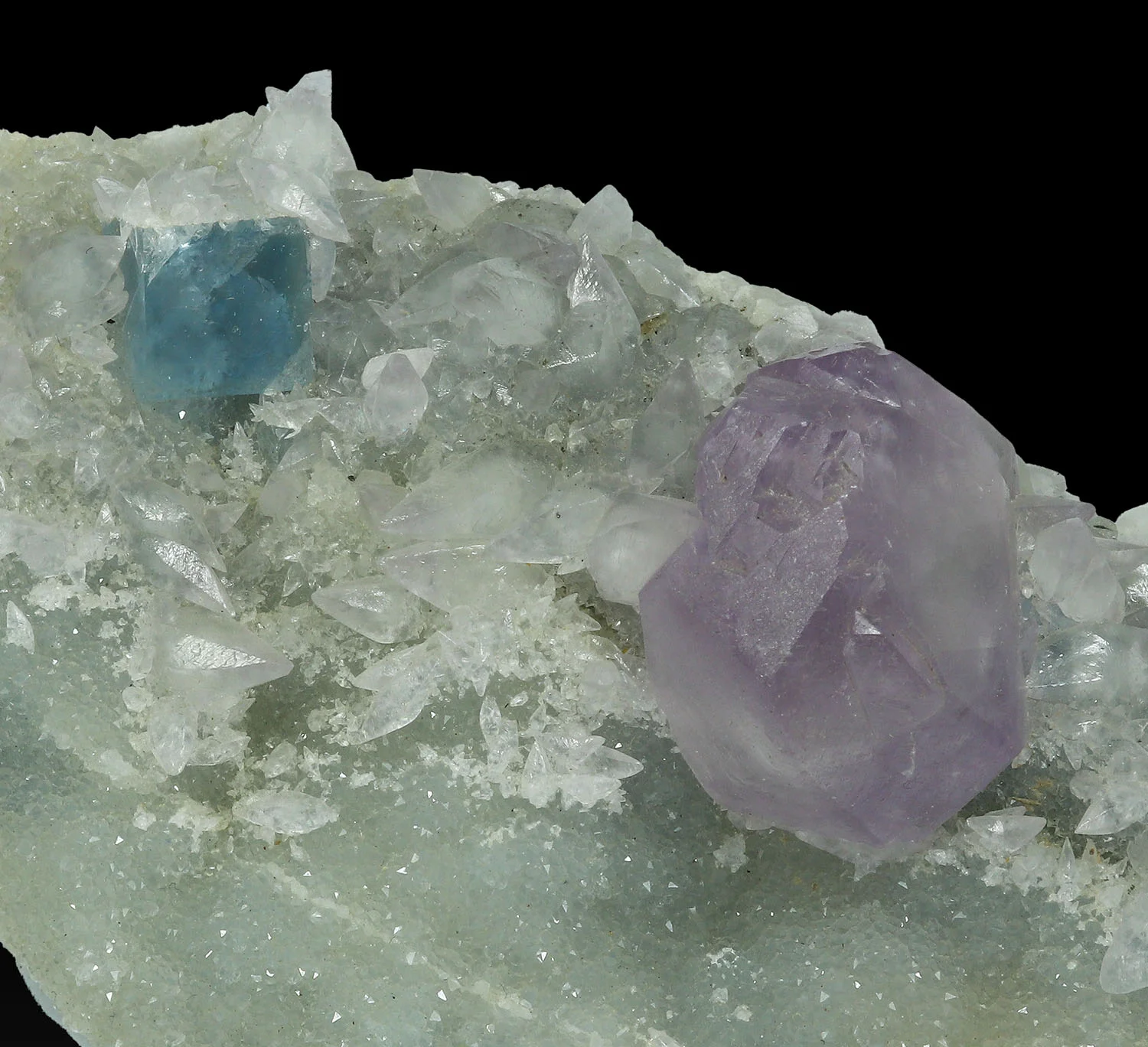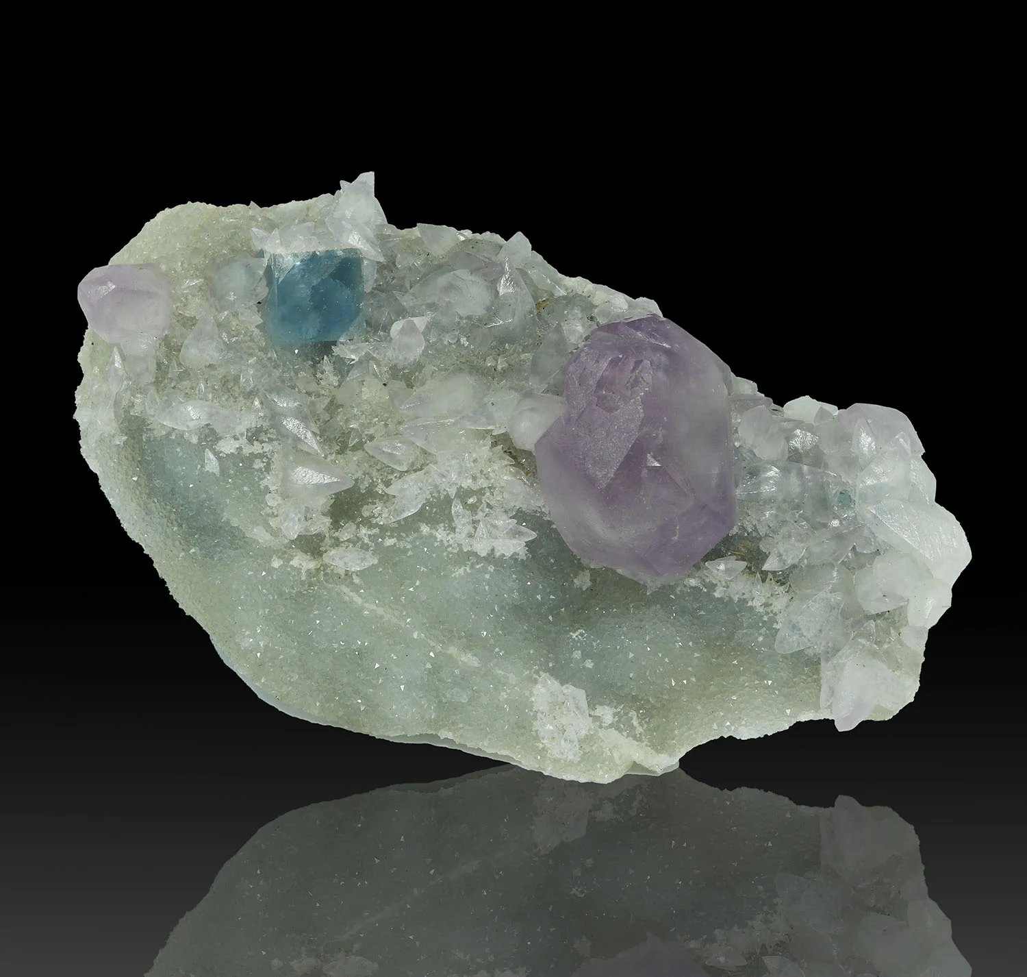 This is a special specimen from my personal colllection of Chinese minerals. It hosts both Purple Calcite (possibly Cobaltoan) and blue fluorite on it! in excellent condition this is a rare and beautiful combination!