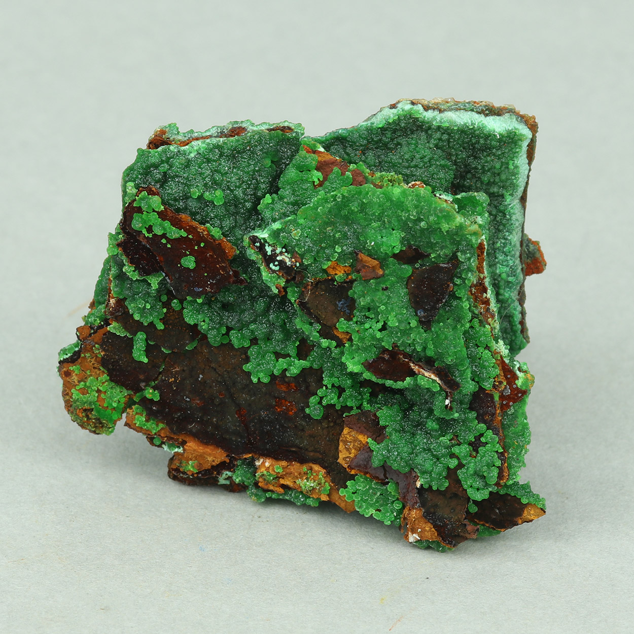 Good, rich conichalcite specimen from Lavrion with neon-green spheroids on matrix.