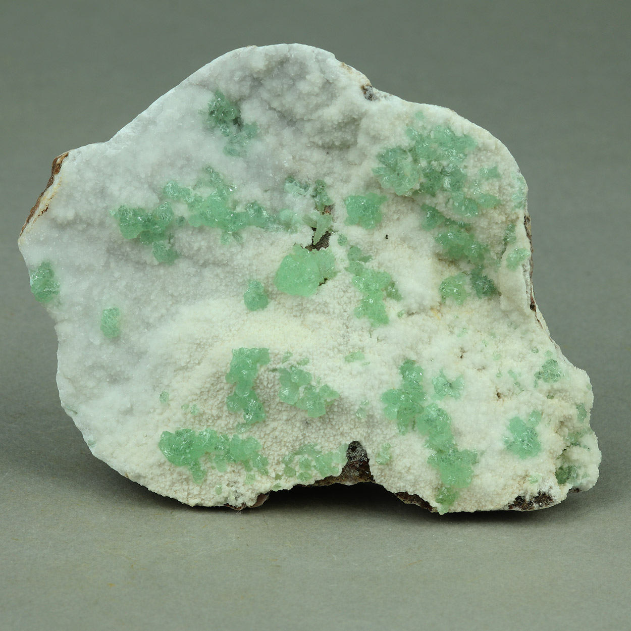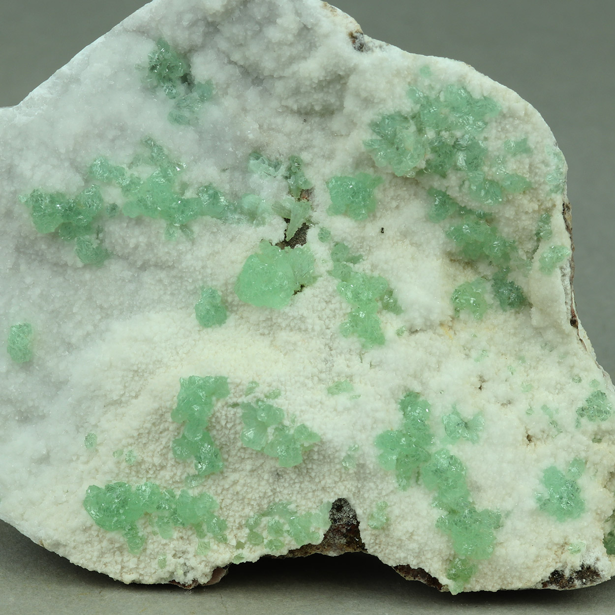 Calcite - CaCO₃ Cuprian Adamite - (Zn,Cu)2(AsO4)(OH)