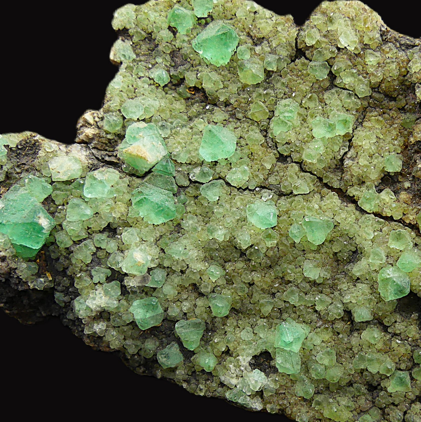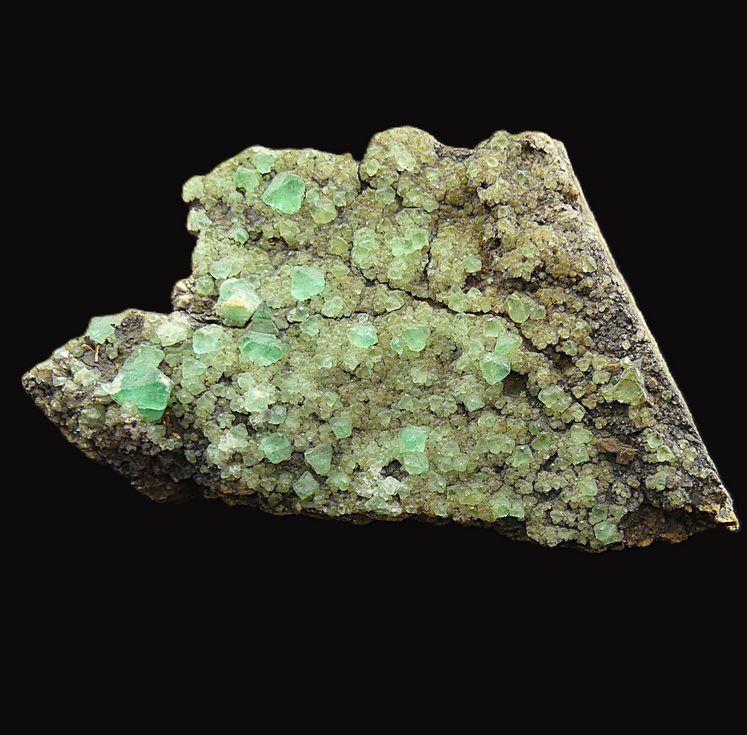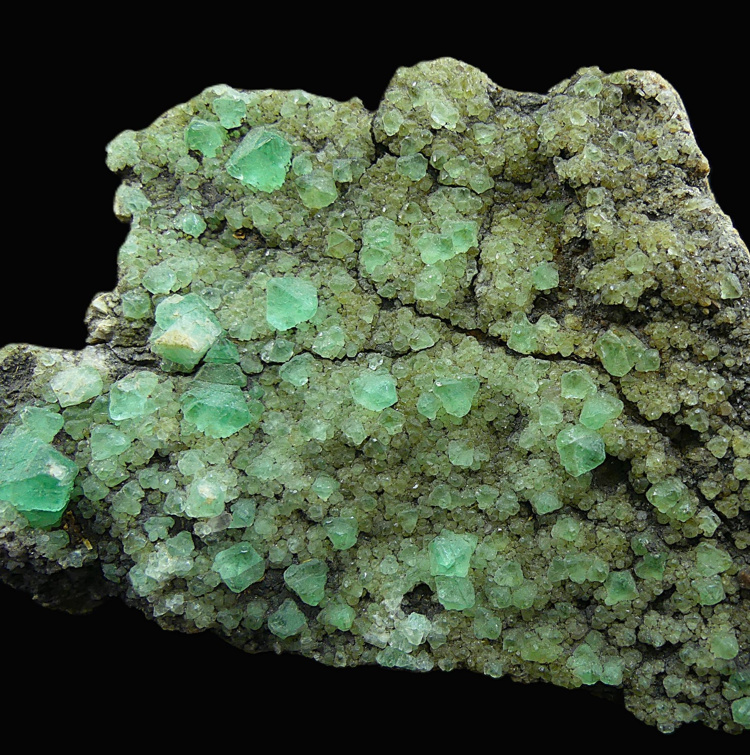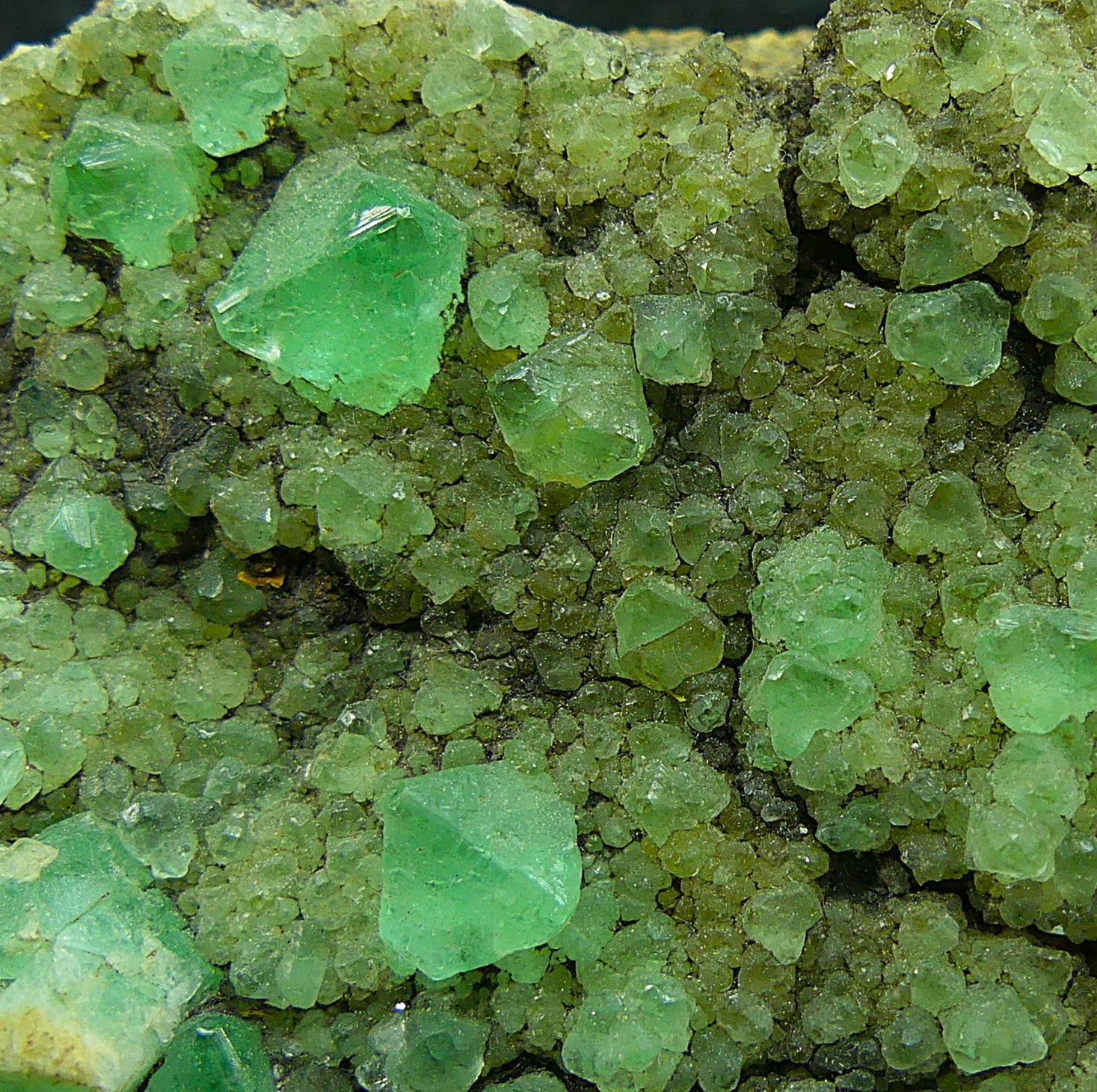 Here is a very old specimen of green fluorite in octahedral crystals on a granite matrix from this quarry in Barcelona, which is now closed and guarded, so it is not possible to enter to look for new specimens. As you can see in the photo, the fluorite from this location is very fluorescent, displaying a blue color under long-wave ultraviolet light.