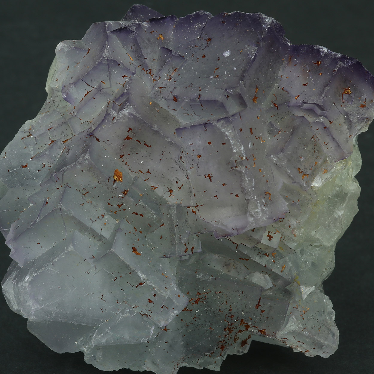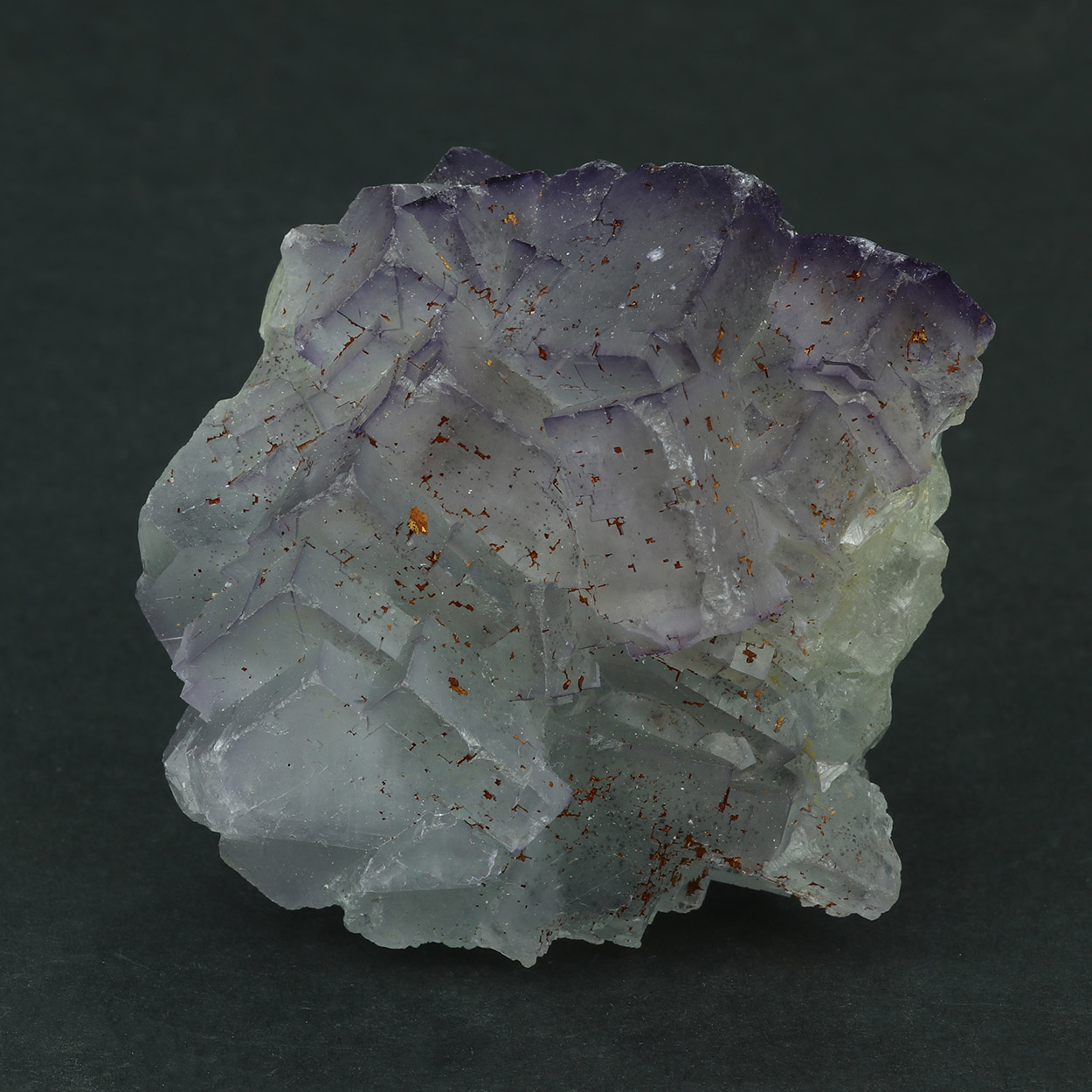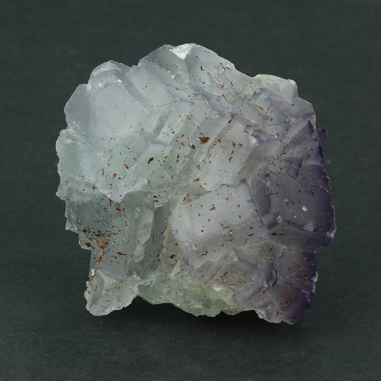 Well-sized and beautiful cluster of fluorite, nearly stepped, both purple and very light greenish/colorless.