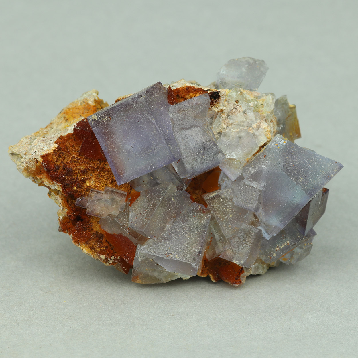Beautiful fluorite specimen from Lavrion with cubic, purplish crystals on matrix.
