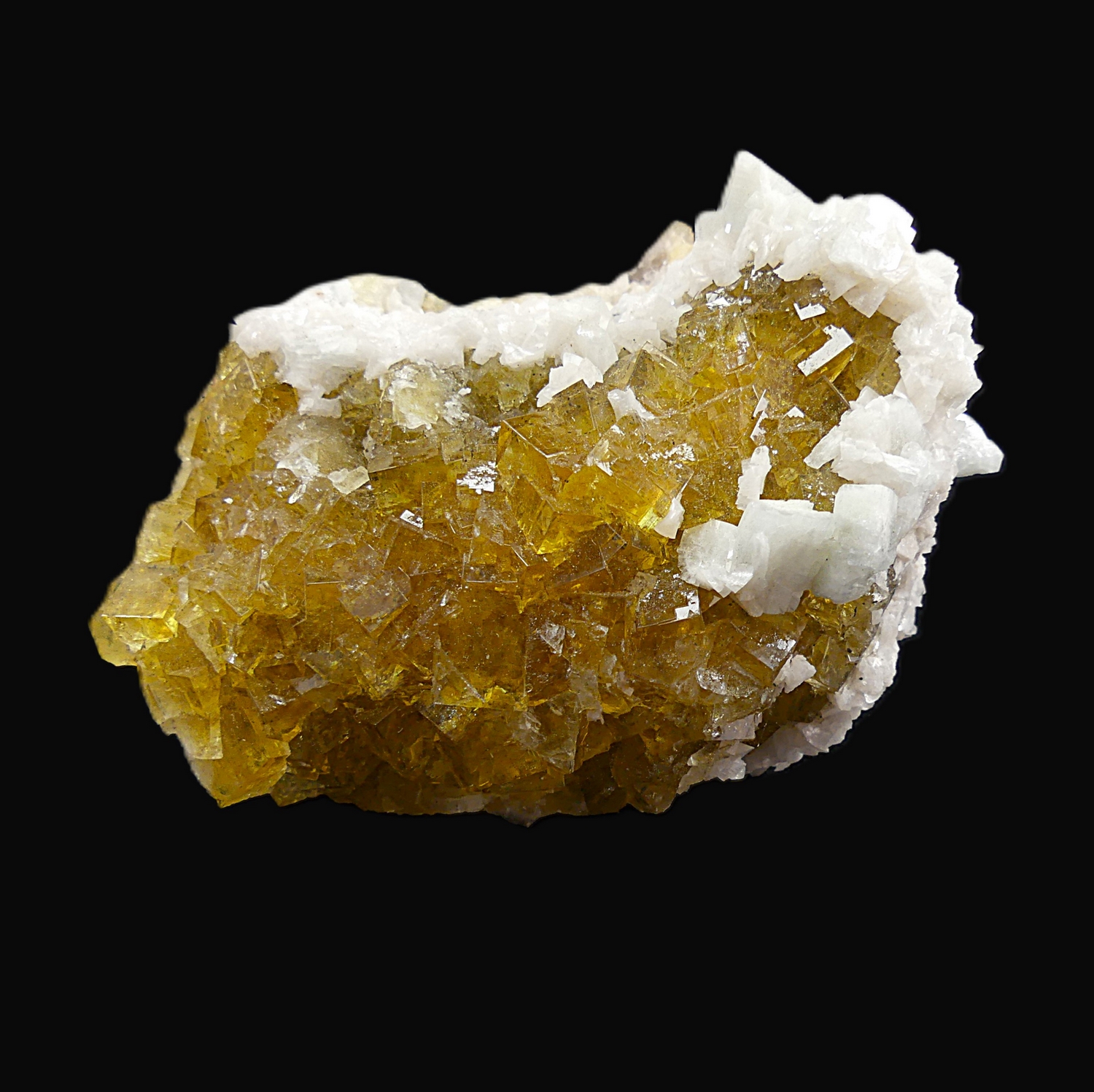 Very nice group of yellow fluorite crystals with minor dolomite from this classic Spanis site.