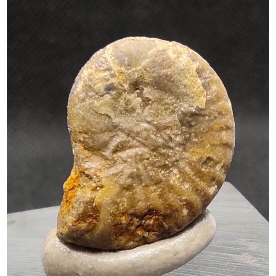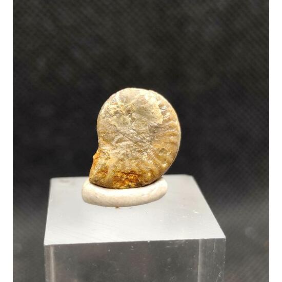 Fossil specimen of great interest in which a pyrite pseudomorphic goethite formation can be seen, from the Lower Cretaceous or Aptian, in which the mineral crystallized around an ammonite fossil. A very interesting piece. Methacrylate box included.