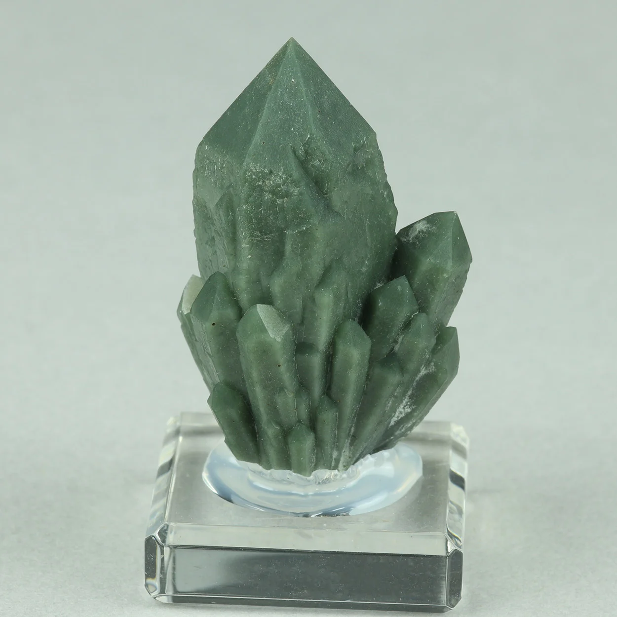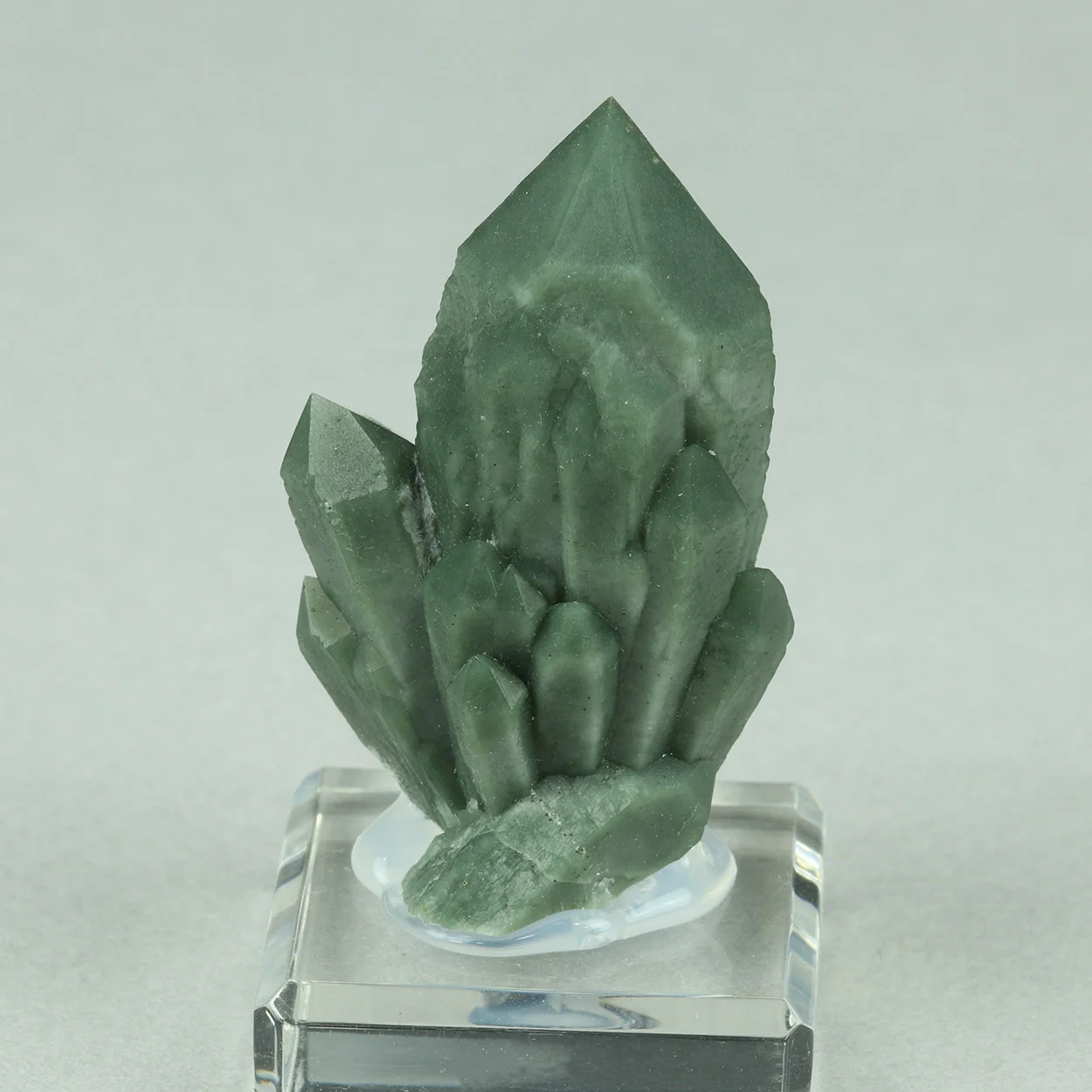 Beautiful cluster of green quartz crystals from China. Excellent form and uniform color, much better than Greek prase in my opinion. From my personal collection of Chinese minerals.