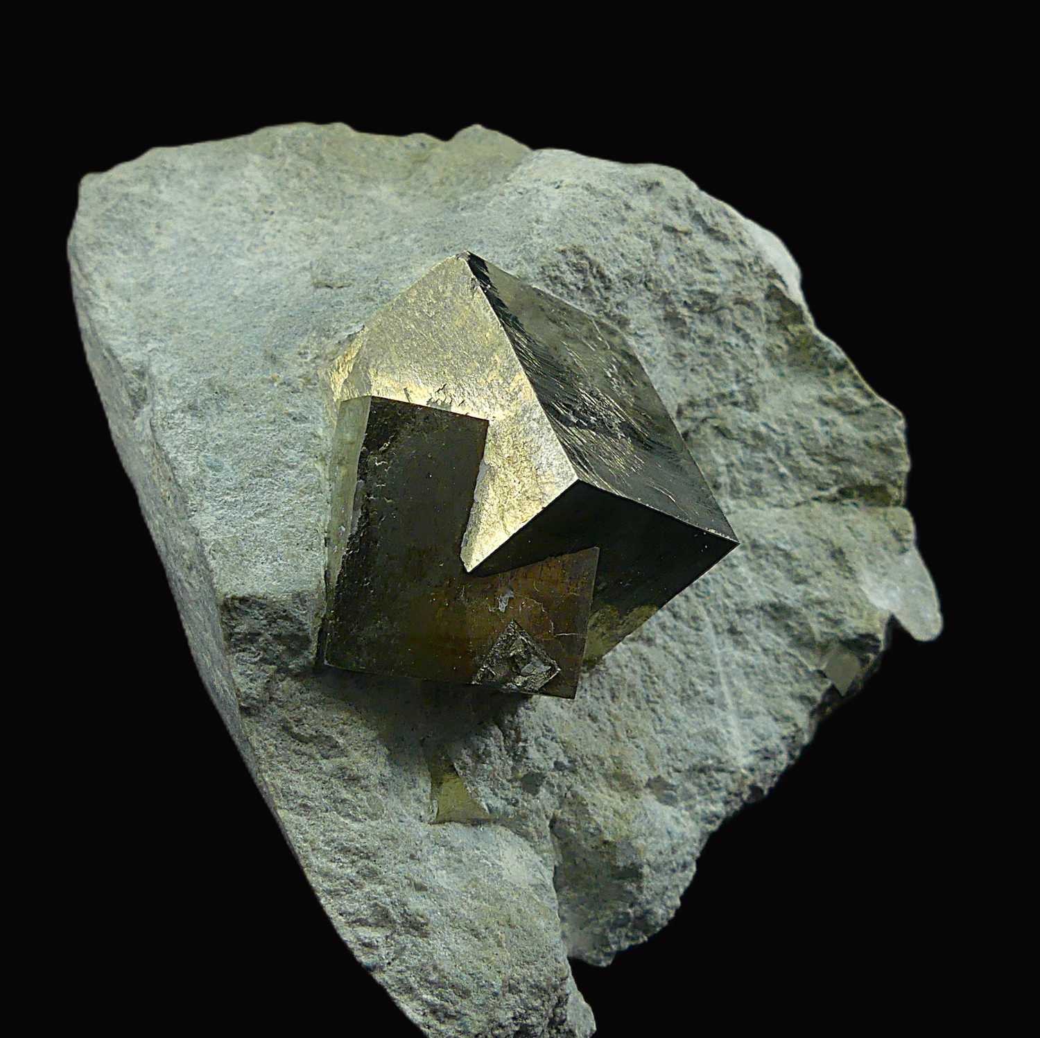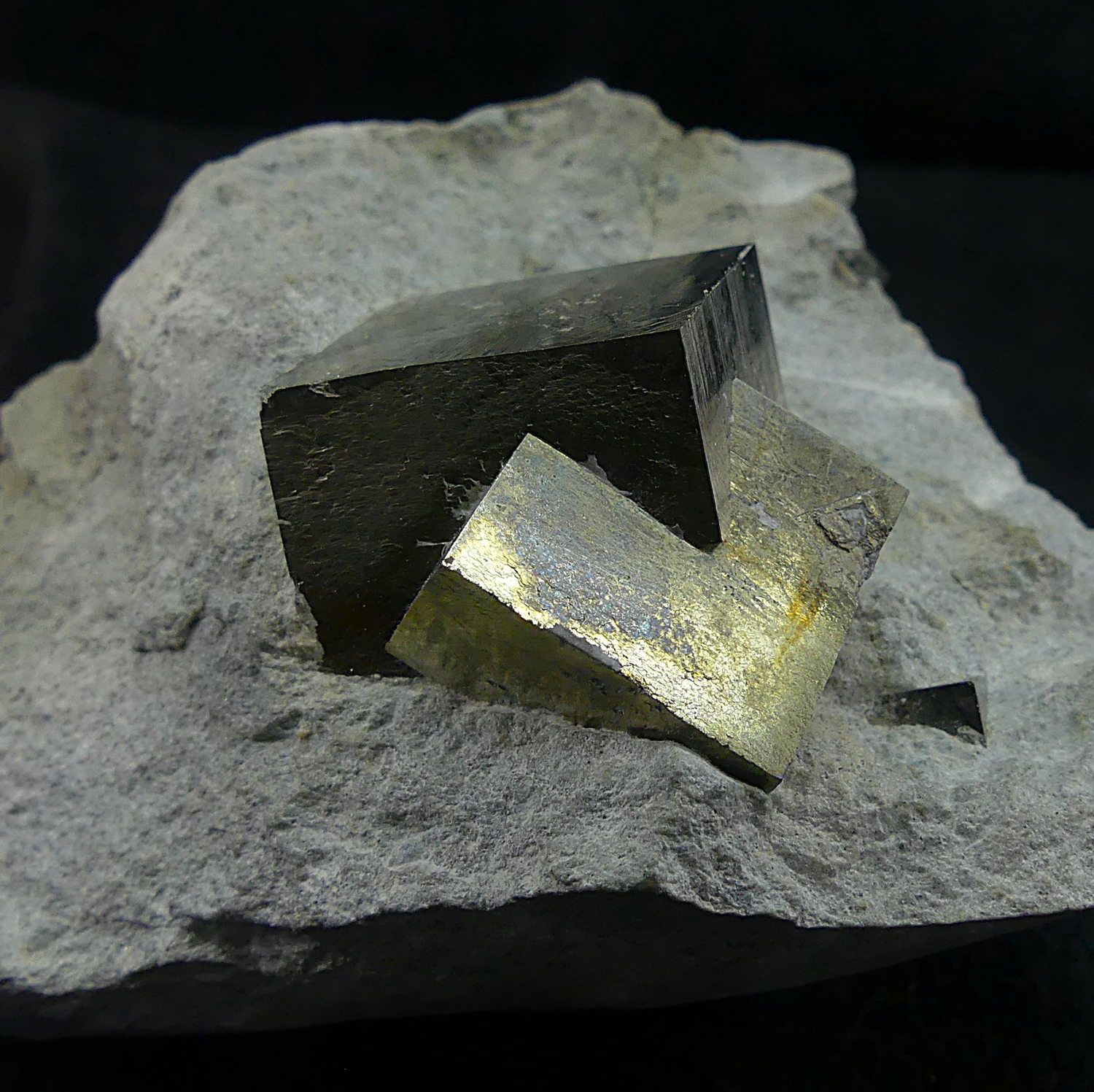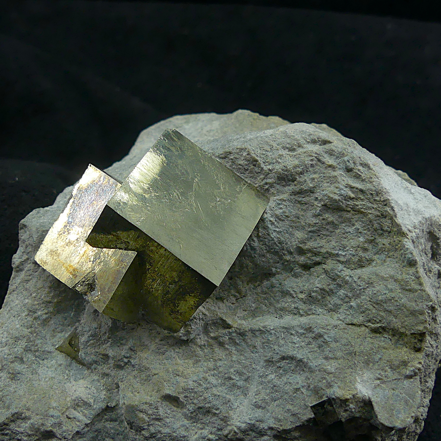 Group of interpenetrating pyrite crystals forming a beautiful cluster within the matrix. Specimen found in 2002 during one of my visits to the mine with Pedro Ansorena.