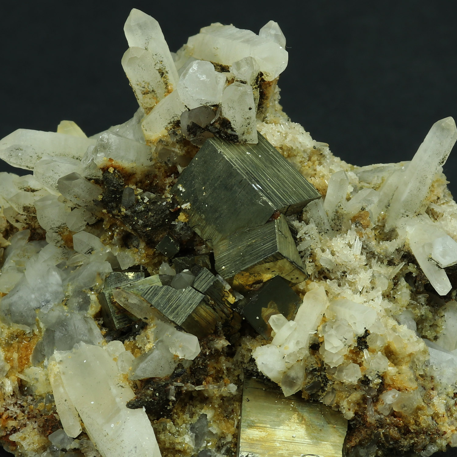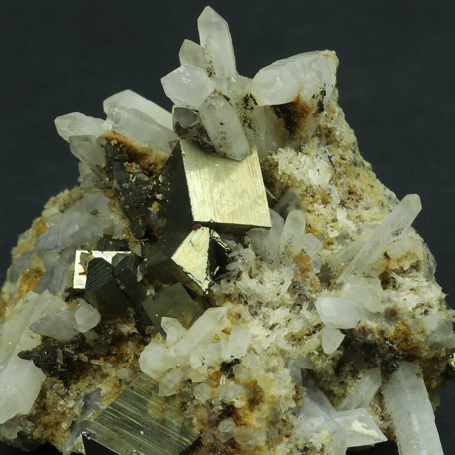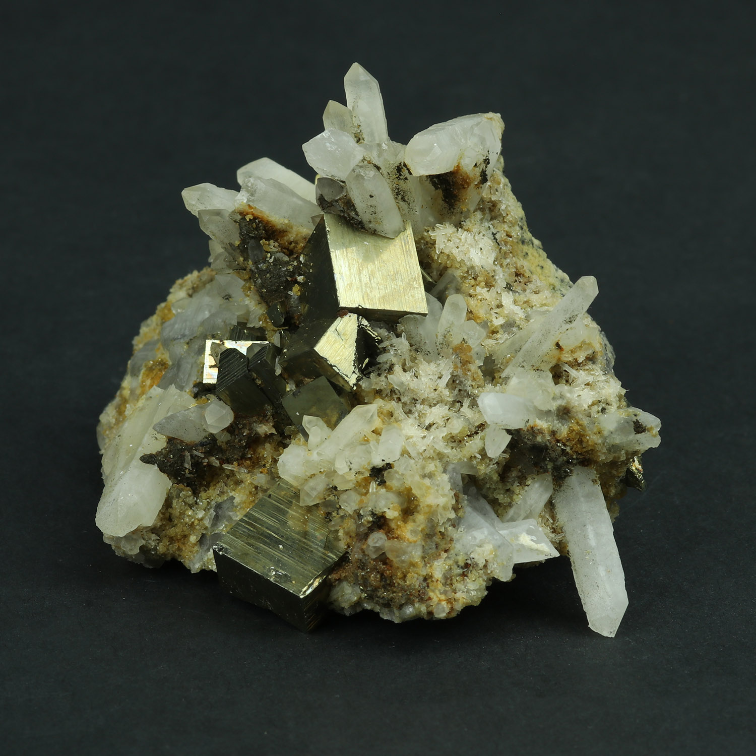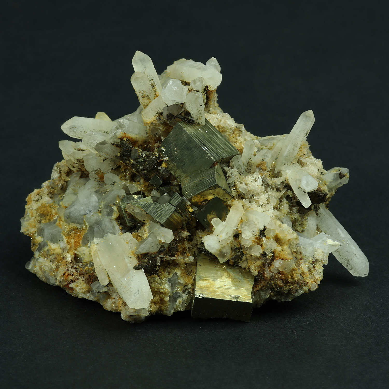 Classic old combo specimen of pyrite cubes with quartz. It dates back to the 1970s and I am selling it on consignment with a local collector who trusted me to auction it here with a reserve price.
