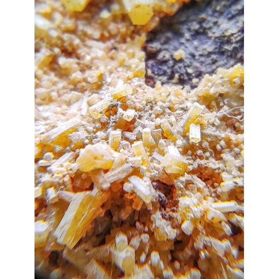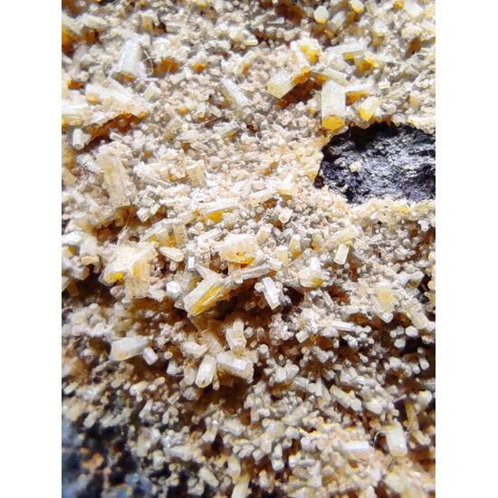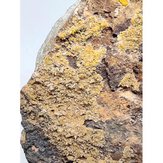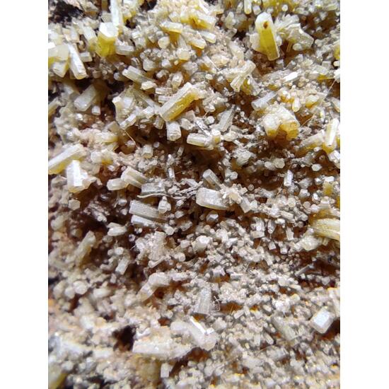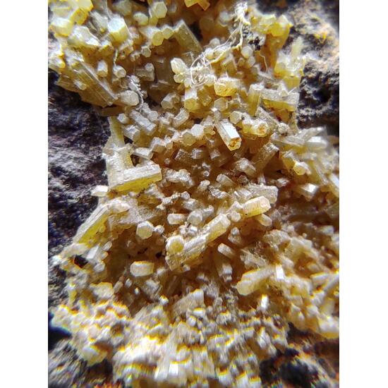 The mines of Santa Eufemia, Córdoba, Spain, are characterized by a silver mineralization of galenas, apart from other minerals, but in terms of secondary minerals of lead, the cerusites and more specifically the pyromorphites stand out at collector level, which even today they are located between their tailings, like that of the sample, a matrix piece lined with pyromorphite crystals of yellow to greenish color, perfectly identified and well finished, hexagonal and of sub-vitreous brilliance. A piece quoted among collectors because fewer pieces with pyromorphite crystals are located each time.