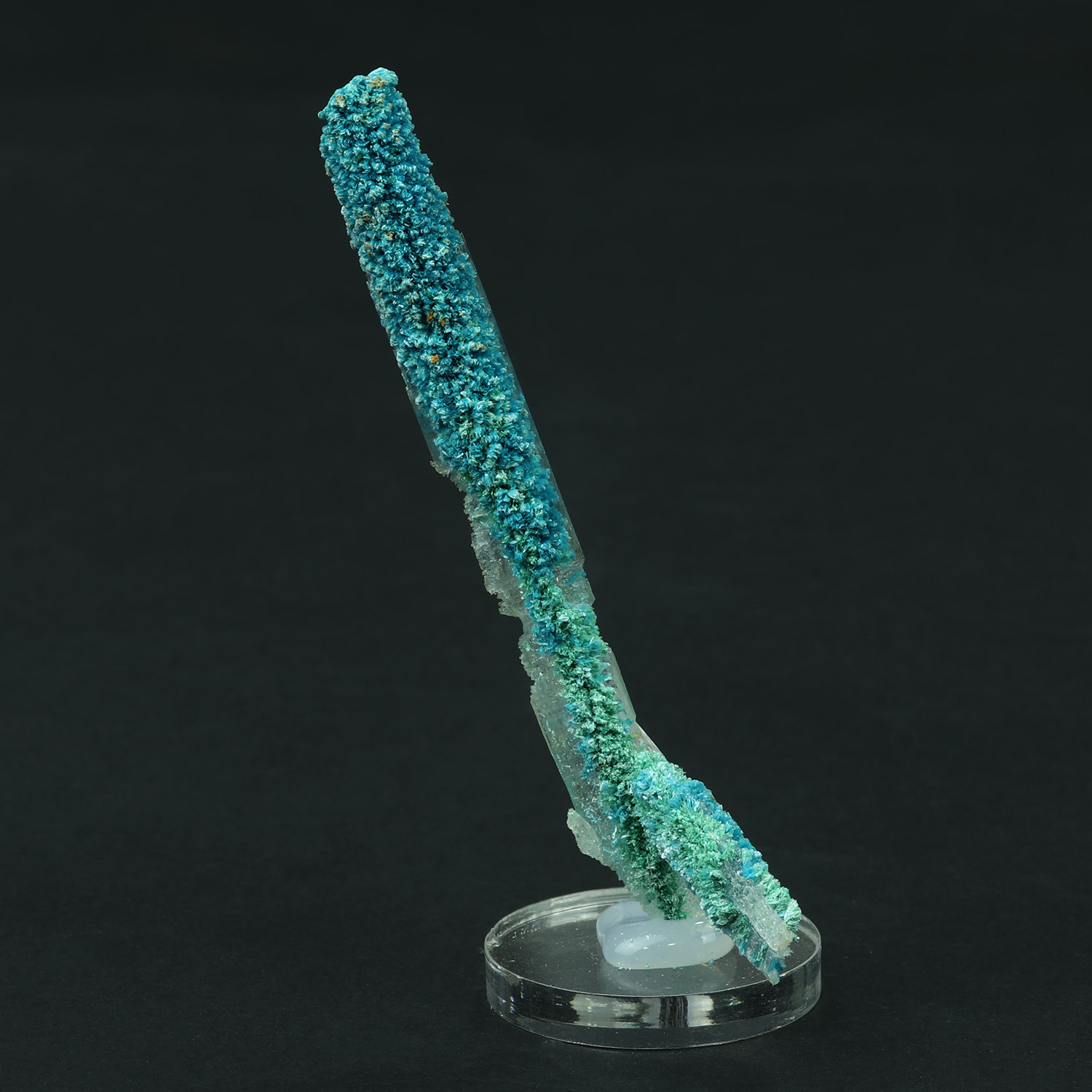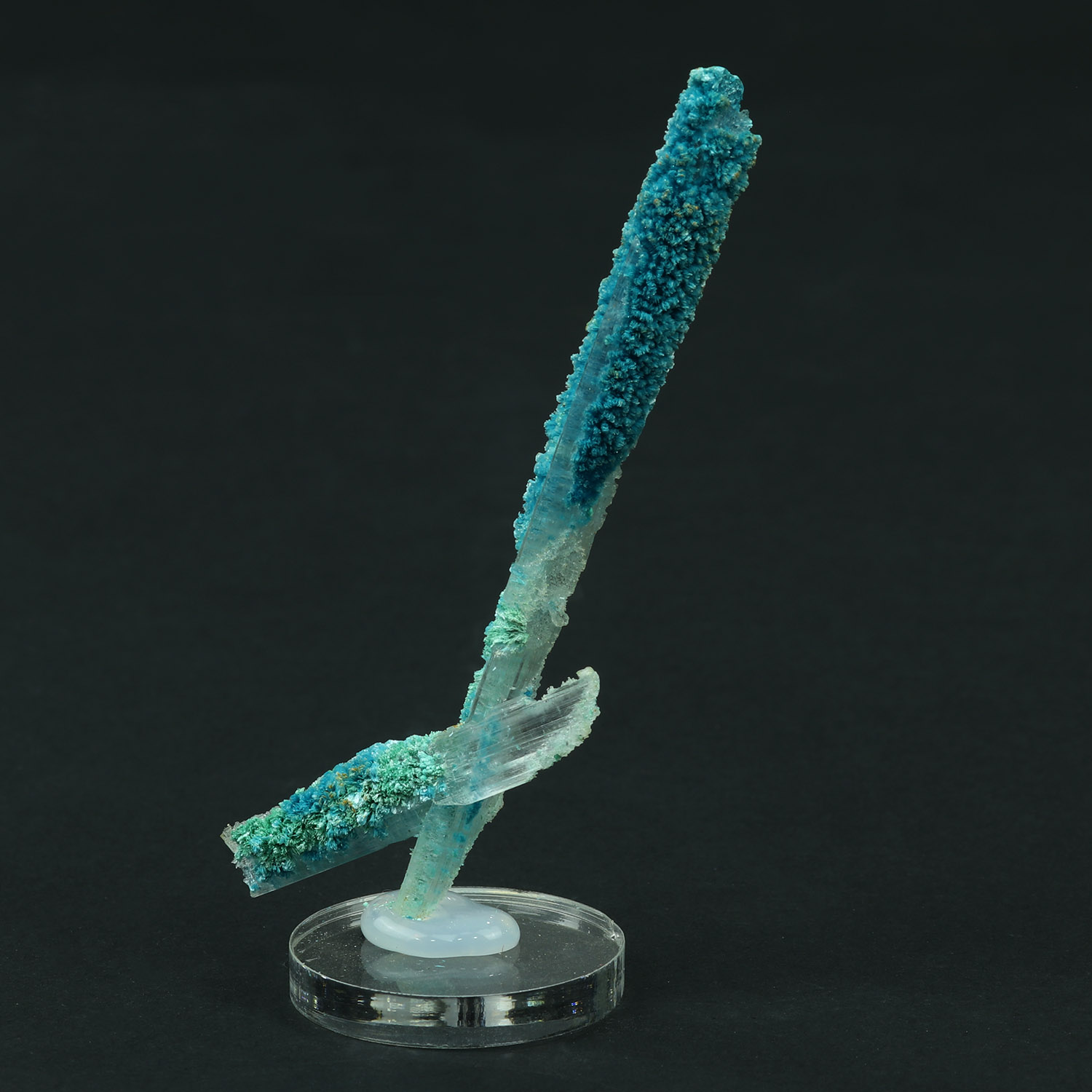 Once upon a time… This is a dream piece. Serpierite comes at its best from the type locality in Lavrion and the serpierite on this piece is as good as it gets. Collectors are happy to own an ugly gossan matrix with a few specks of it. But no! Here it is, the RARE type-locality mineral on an a very aesthetic specimen, on clear gypsum crystals! Yes, the gypsum has broken terminations but this is one of those things that won’t come out again. Discovered in 2016. From my personal collection.